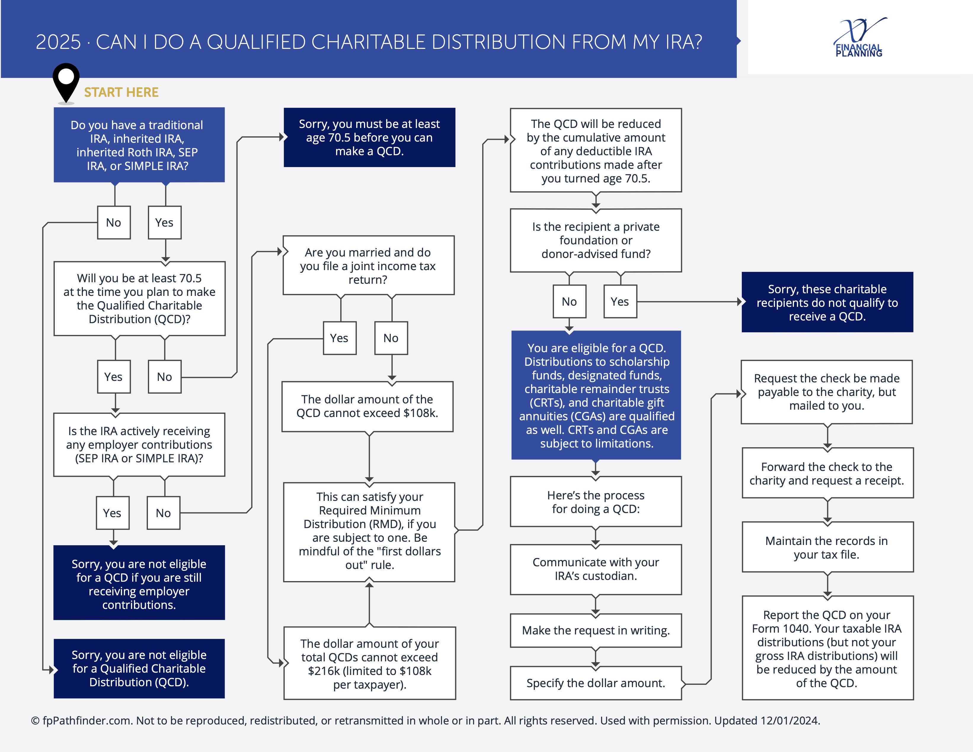 Can I Do A Qualified Charitable Distribution From My IRA? This flowchart will guide you through the eligibility factors.
